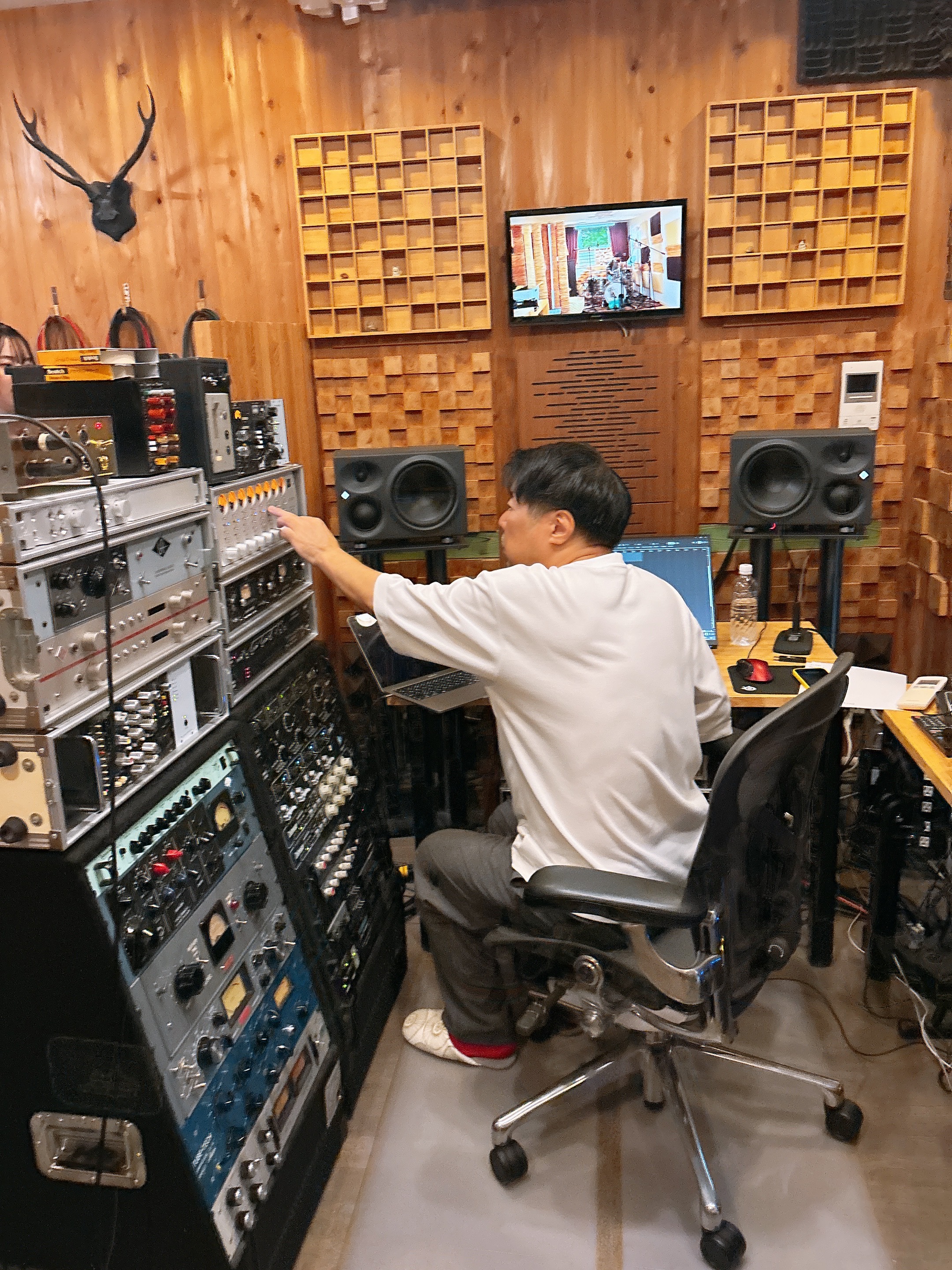 アシスタントのぽんちゃんと共に、エンジニアの平野栄ニさんに録音・ミックス・マスタリングまでお願いします。
