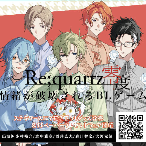 情緒が破壊されるBLゲーム『Re;quartz零度』は、2019年に音声収録費用をご支援頂く目的でクラウドファンディング(以下、CF)を実施しました。結果、豪華声優陣による音声収録を実現し、2020年にPCゲーム版を発売、その後、アニメイトゲームス様によるスマホブラウザ化やステラワース様によるグッズ化も実現出来ました。